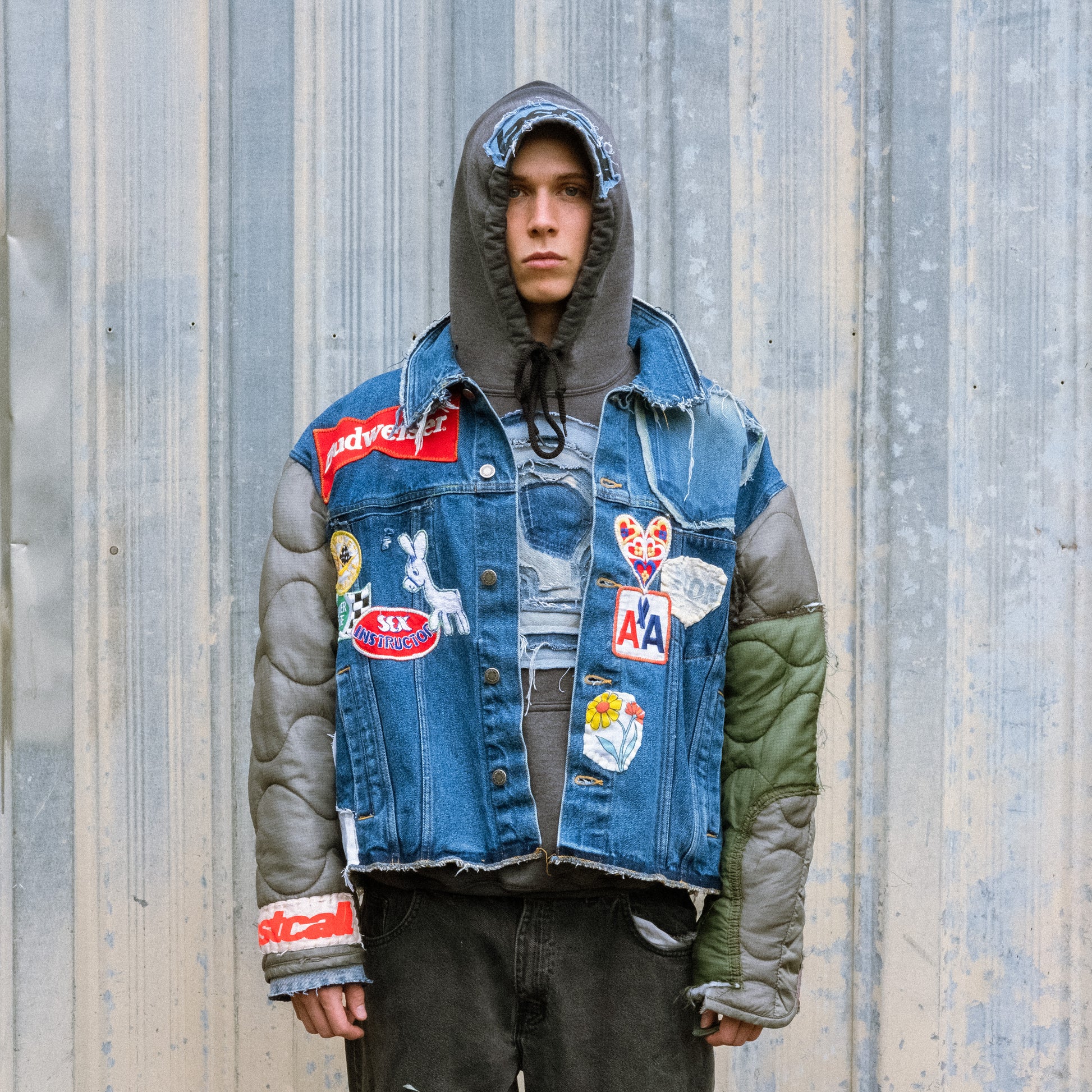 denim puffer flame jacket