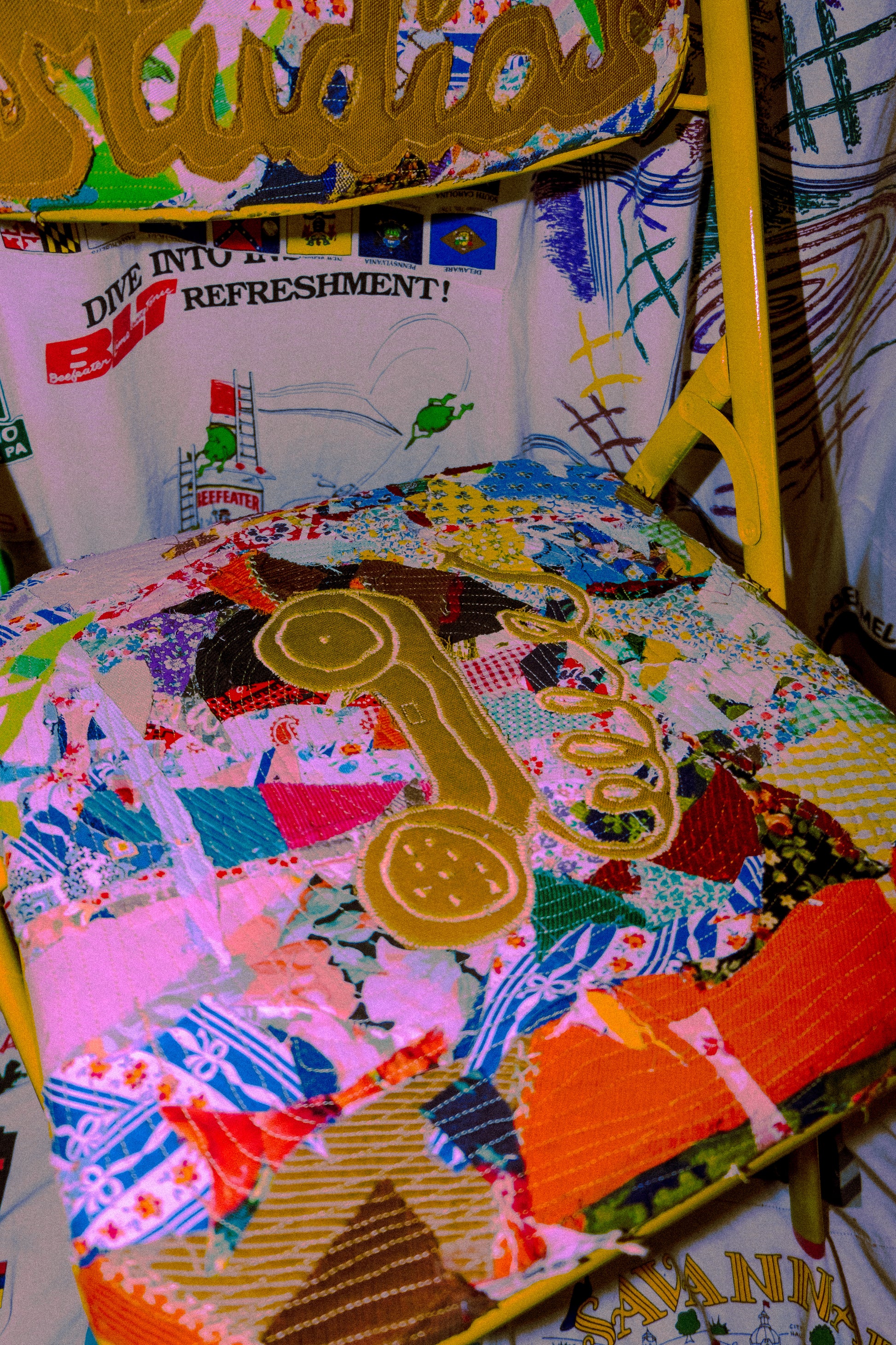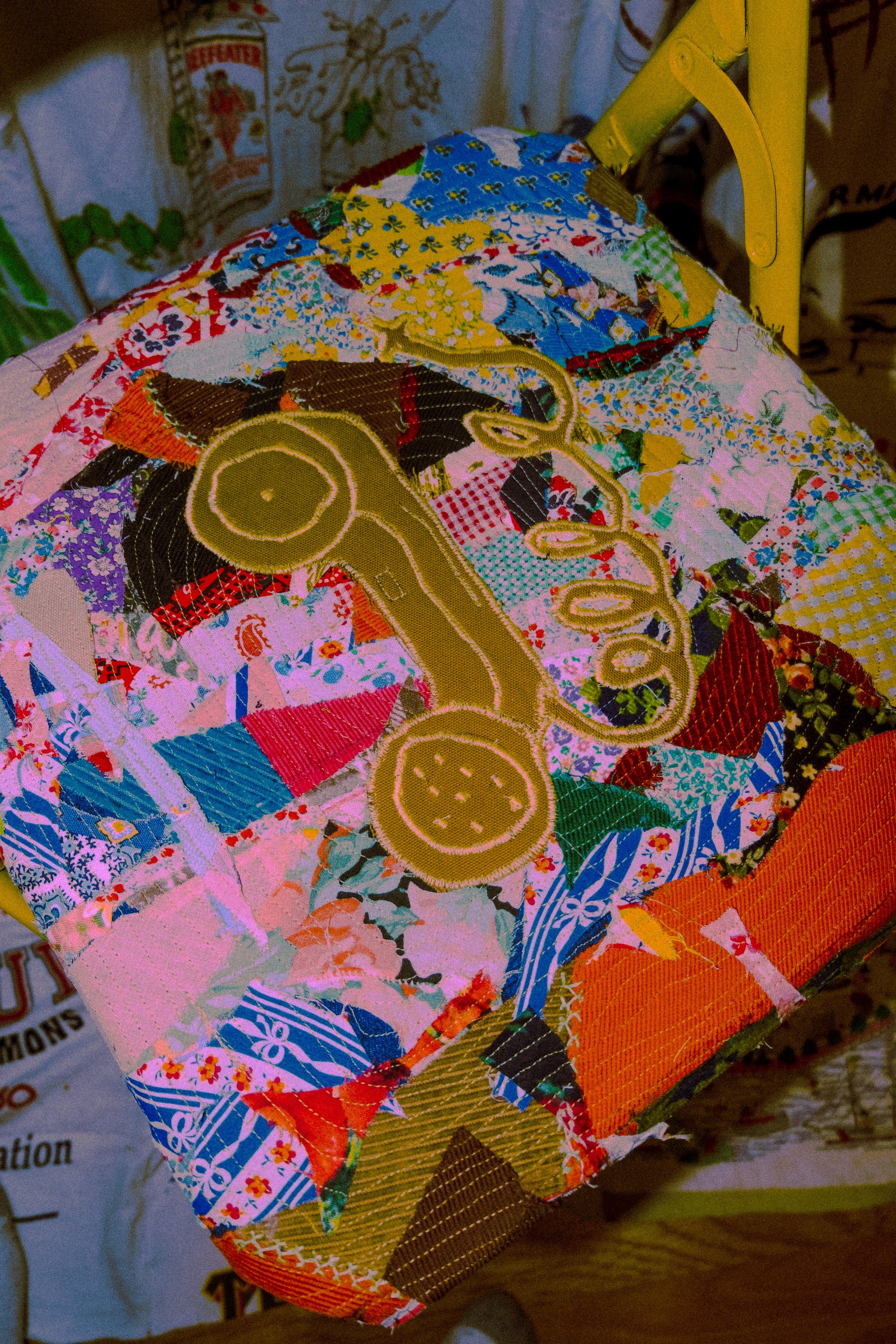 vintage florar scraps stitched on sitting area