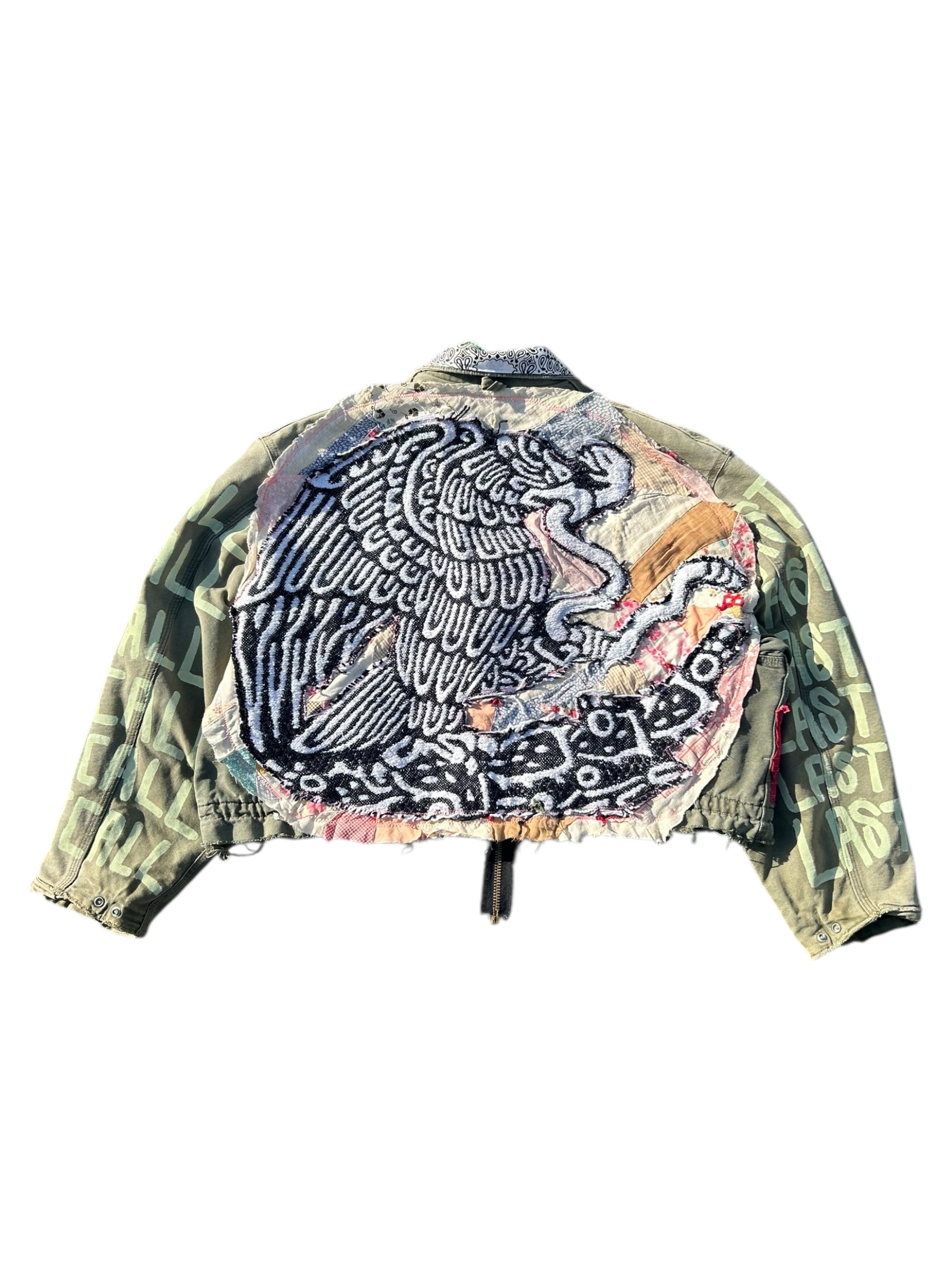 Altered vintage carhartt jacket with multiple vintage and modern patches from Mexico and US all over