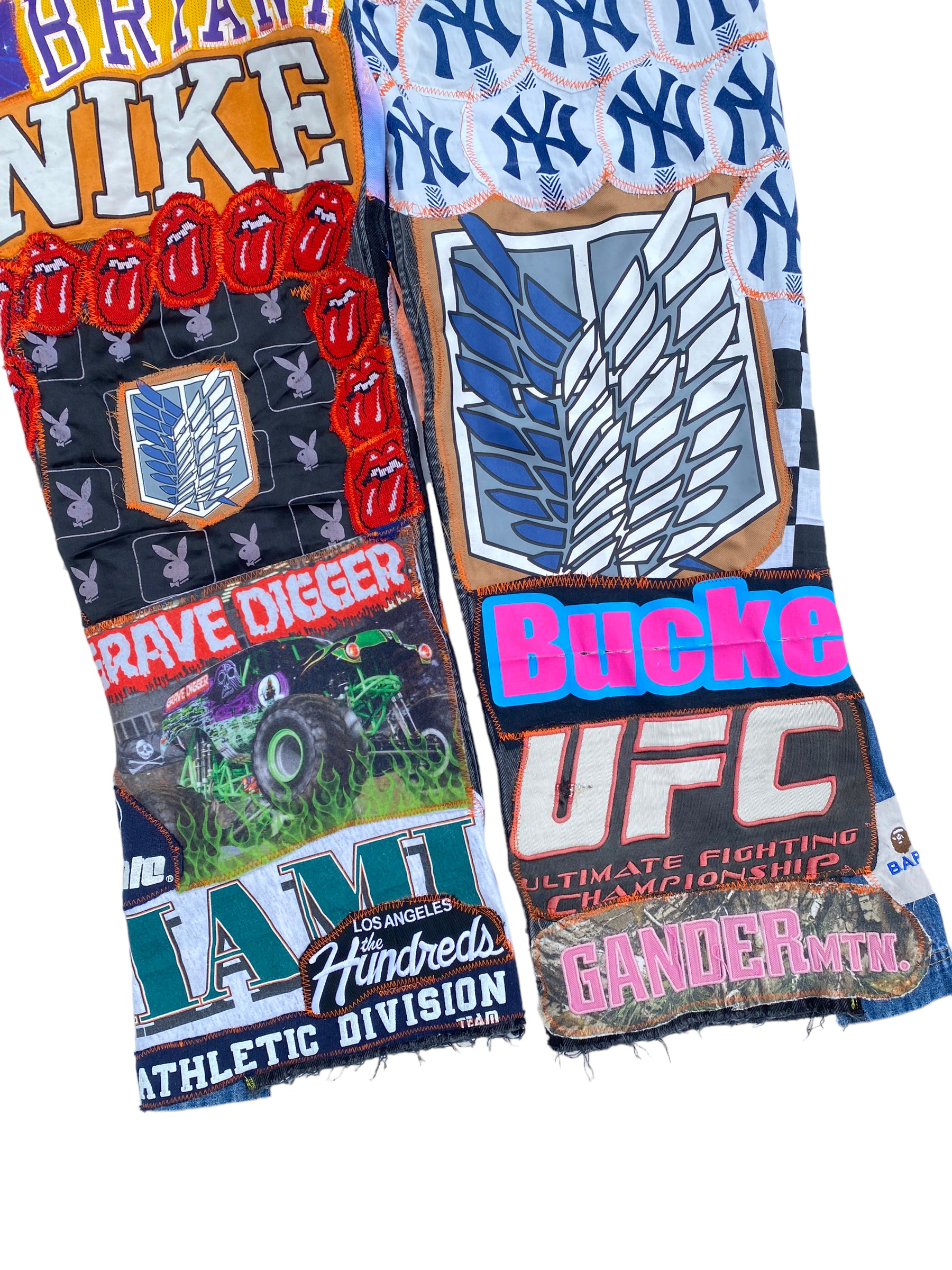 multiple vintage and modern patches all over